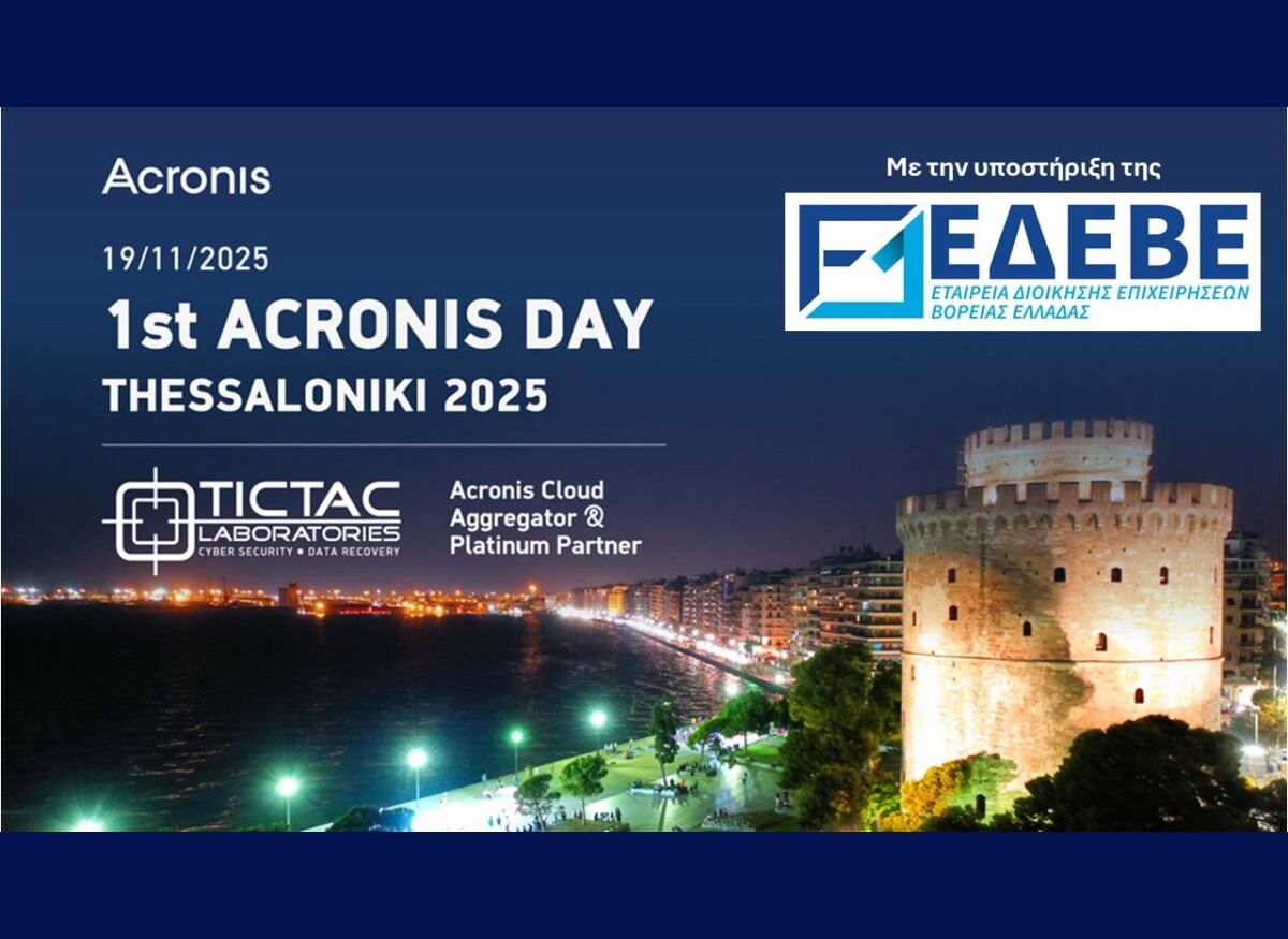 • 19 Νοε 2025: 1st Acronis Day Thessaloniki – Με την υποστήριξη της ΕΔΕΒΕ